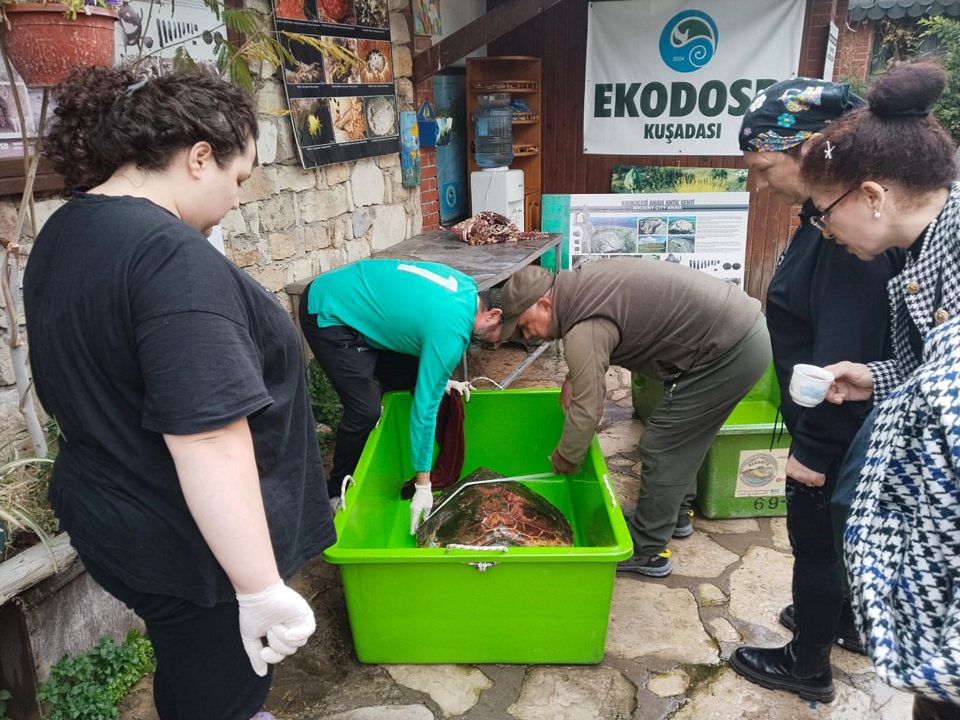 Urla’da denizde hareketsiz duran dalış yapamayan bir Caretta caretta, İzmir Büyükşehir Belediyesi PAKO tesislerine getirilerek sosyal yaşam kampüsü veterinerleri tarafından ilk yardım müdahalesi uygulandı. Doğa Koruma ve Milli Parklar İzmir Şube Müdürlüğü ekipleri tarafından PAKO’dan alınıp Selçuk’a getirilen kaplumbağa, EKODOSD tarafından teslim alınarak Kuşadası’na getirildi.