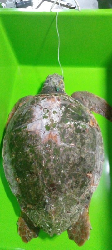 Kaplumbağanın karapasının yosunlaştığı ve farklı bölgelerinde epibyontların olduğu görüldü.