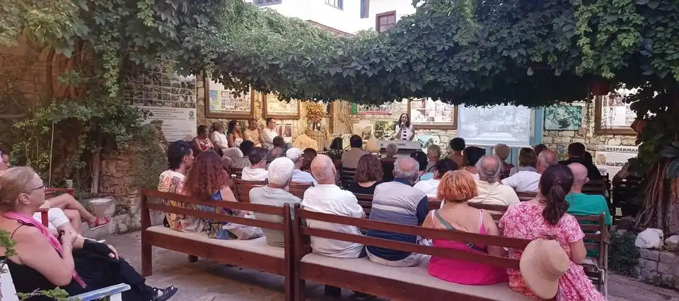Yapılan sunumdan sonra konukların sorularını yanıtlayan Prof. Dr. Zeliha Gider Büyüközer’e, Aydın Arkeoloji Müzesi eski müdürü Yılmaz Akkan ve müze araştırmacısı Aynur Akkan tarafından EKODOSD’un teşekkür belgesi takdim edildi.