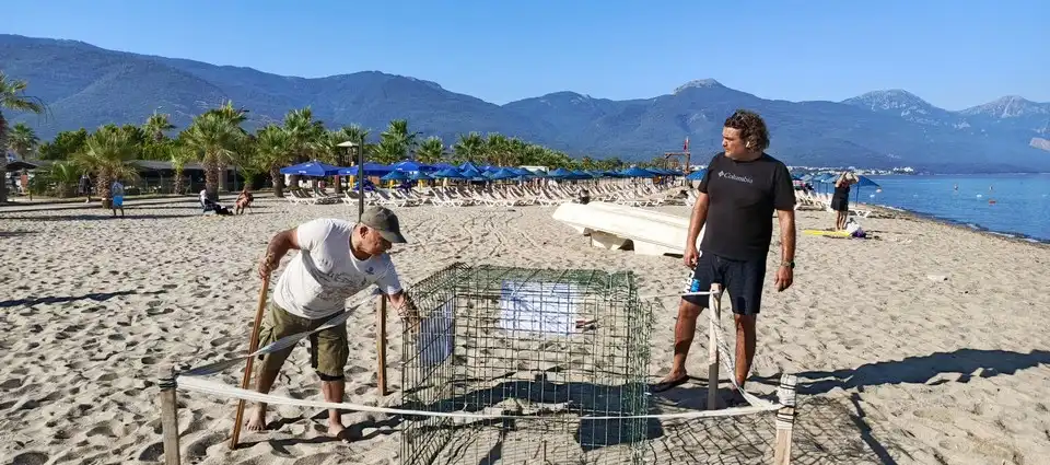 Haber geldikten sonra Doğa Koruma ve Milli Parklar Aydın Şube Müdürlüğü ekipleriyle birlikte kumsala gidip, yumurtaların bulunduğu yuva yerini tespit ederek tel kafeslerle çevirip gerekli koruma önlemlerini aldık. Bilgilendirme posterleri astık.