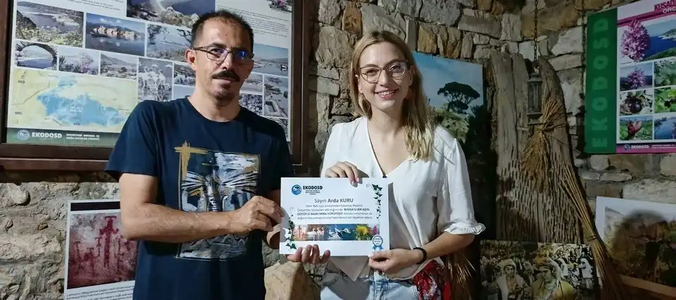 Sunumun ardından konukların soruları yanıtlayan Arda Kuru’ya, Bakırçay Üniversitesi Sosyoloji Bölümü öğretim üyesi Prof. Dr. Çağrı Eryılmaz tarafından EKODOSD’un teşekkür belgesi takdim edildi.