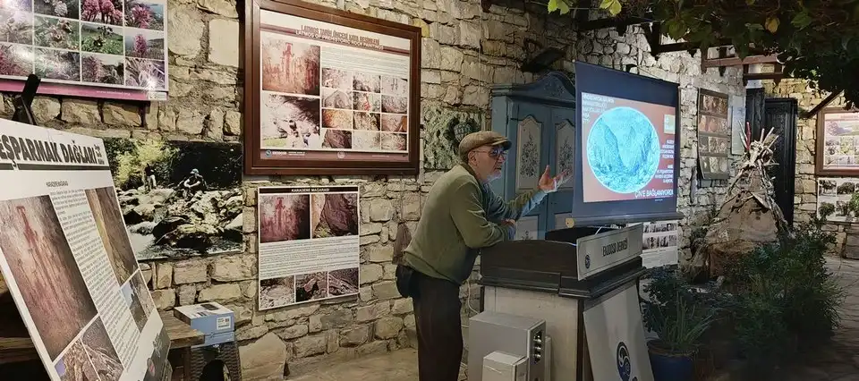 Sunumuna başlamadan önce, arkasındaki panoda yer alan Latmos (Beşparmak) Dağları’ndaki kaya resimlerinin ülkemiz turizmi için önemine dikkat çekerek eşsiz güzellikteki bu coğrafyanın korunmasına vurgu yaptı.