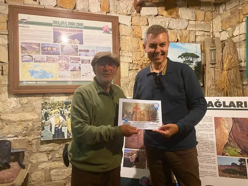 Yapılan sunumdan sonra kitaplarını imzalayan Özcan Yurdalan’a, profesyonel turist rehberi Mustafa Aktaşoğlu tarafından EKODOSD’un teşekkür belgesi takdim edildi.