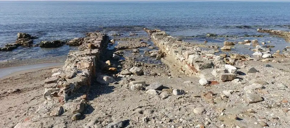 Kültür varlıkları açından Kuşadası’nın en önemli tarihi yerlerinden biri, ilk yerleşimi 8 bin yıl öncesine giden bir höyük ve onun üzerinde yer alan 13.yy. Bizans Kalesinin görüldüğü Anaia Kadı Kalesi’dir. Kadı Kalesi’nin güneydoğu ana giriş kapısından sahile inen noktada yapı kalıntıları mevcuttur. Hemen her yılın Lodos fırtınalarının etkisiyle dalgaların kumları çekmesiyle birlikte yapılar açığa çıkmaktadır.