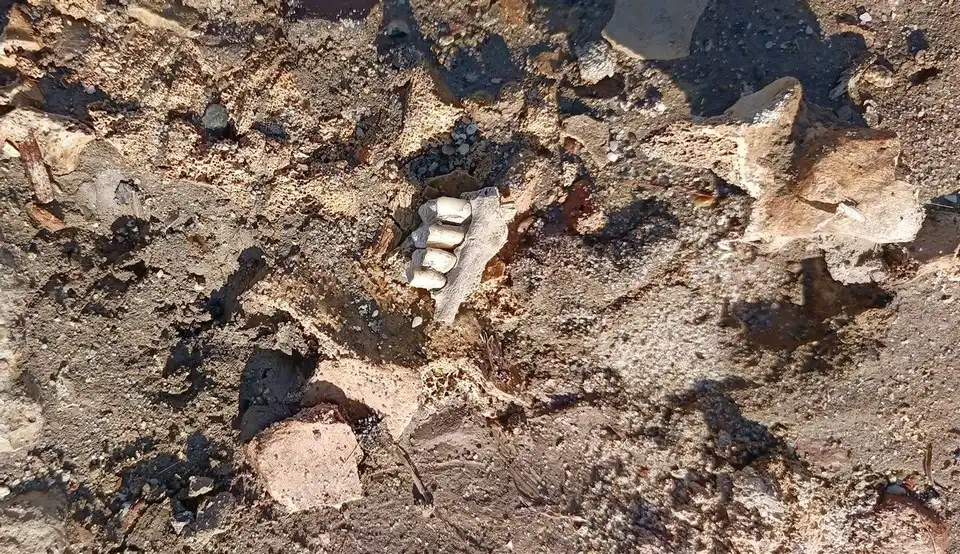 Kilisenin doğusunda bulunan mezarlar dalgaların etkisiyle meydana çıkmakta ve kemikler taşların içinde görülmektedir. Kol, bacak ve omur kemiklerinin yanı sıra, o döneme ait hayvanlara olduğu tahmin edilen diş kalıntıları ortaya çıkmış vaziyettedir.