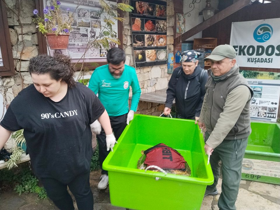 Urla’da denizde hareketsiz duran dalış yapamayan bir Caretta caretta, İzmir Büyükşehir Belediyesi PAKO tesislerine getirilerek sosyal yaşam kampüsü veterinerleri tarafından ilk yardım müdahalesi uygulandı. Doğa Koruma ve Milli Parklar İzmir Şube Müdürlüğü ekipleri tarafından PAKO’dan alınıp Selçuk’a getirilen kaplumbağa, EKODOSD tarafından teslim alınarak Kuşadası’na getirildi.
