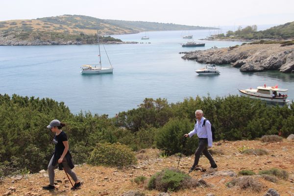 Her koya sıra sıra dizili tekneleri izleyerek yürüyüşümüze devam ettik. Yaklaşık 30 dereceye varan sıcaklıkta serinlemenin yolunu Adaboğazı’nın temiz sularında bulduk. Hazırlıklı gelenler kendini denize attı, mayolarını getirmeyenler ayaklarını serinletti. Bizleri üzen ve ne yazık ki tüm sahil kentlerinin en önemli sorunlarından birini oluşturan çöpler, böylesine doğal bir alanda bile karşımıza çıktı.