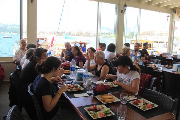 Akvaryum koyunun güzelliklerini arkamızda bırakarak dönüşe geçtik. Bodrum’un son kalan güzelliklerini bir daha geldiğimizde görebilmek umuduyla, binlerce konuttan oluşan manzaraları izleyerek Bitez’e döndük. Bodrum Belediyesi’nin çalıştırdığı Bitez Cafe Restoranında yemeklerimizi yedik. Dakikalarca sıra beklediğimiz meşhur Bitez dondurmalarının tadına bakarak, Bodrum’a döndük. Beyaz badanalı, begonvillerle süslü dar sokaklarından geçerek, Bodrum’un güzelliklerini keşfetmeye başladık.