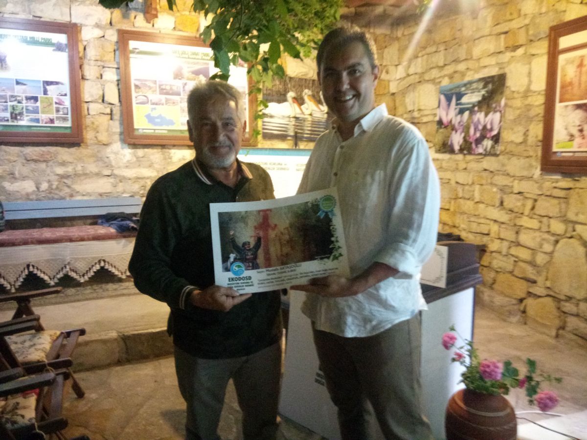 Bu ülkelerin “Gelecek Turizmde” anlayışlarıyla, ülkelerinde yaptıkları gelişmeleri, özellikle doğal alanlarını koruyarak nasıl kazandıklarını ülkemiz kıyaslamalarıyla anlattı. 2 saat süren sunumu konuklar ilgiyle izledi. Mustafa AKTAŞOĞLU’na, Avukat Sebahattin BEKTAŞ tarafından EKODOSD’un teşekkür belgesi takdim edildi.