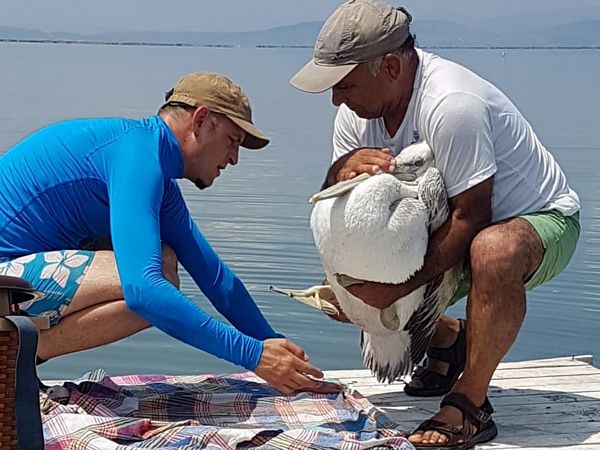 Dilek Yarımadası – Büyük Menderes Deltası Milli Parkı’nın Karina ve Gediz Deltası’nın Homa Dalyanı’n da üreme yapan Tepeli Pelikan (Pelecanus crispus)’ların yetişkin yavrularına geçtiğimiz günlerde takılan uydu vericilerden sonra, yetişkin yavrulara birer tane daha takıldı.Doğa Koruma ve Milli Parklar Genel Müdürlüğü’nün Tür Koruma Eylem Planı kapsamında aldığı uydu vericiler nesli tehlike altında bulunan türlere takılıyor.
