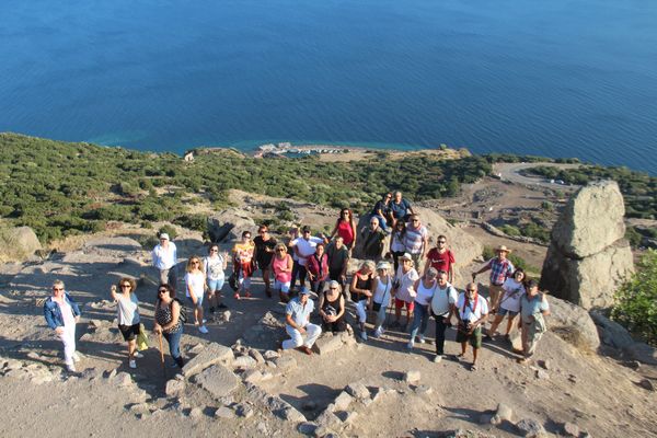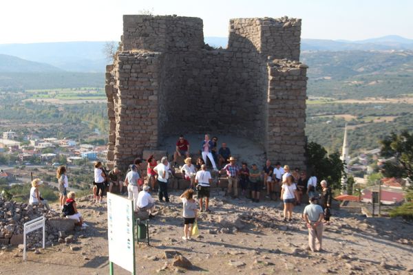 Buradan Çanakkale’ye bağlı Behramkale Köyüne geldik. Behramkale köylülerinin, ören yerine çıkan taş döşeli yolun etrafında oluşturdukları tezgahlarda satışa sundukları rengarenk hediyelik eşyaları ve ürettikleri ürünleri inceleyerek, yokuştan Assos antik kentine ulaştık. Assos antik kentinin hikayesi rehberimiz Yeşim CİNBAŞ tarafından anlatıldı. Athena Tapınağı’nın yükseltilerinden, Kuzey Ege’nin adalarını, güneşin yavaş yavaş denizin üzerinden batışını ve yüzlerce metre yukarıdan Assos antik limanını izledik.