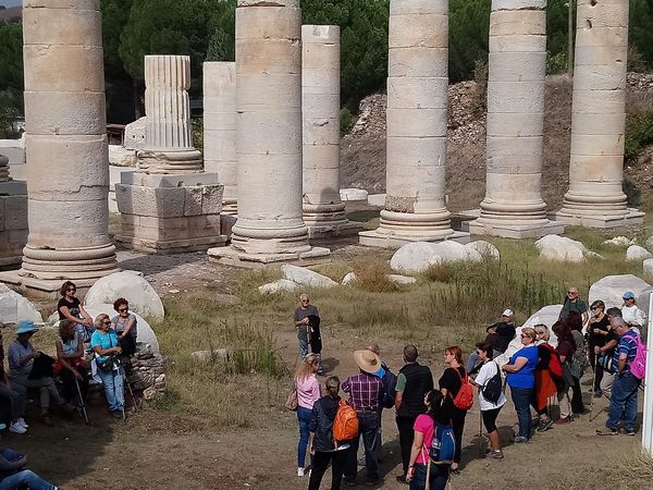 Yürüyüşümüzün sonunda, Yunanca da Sardeis, Lidyaca da Sfard olarak geçen Sart antik kentinin Artemis Tapınağı’na geldik.Yaklaşık 3 bin yıllık bir yerleşim olan Sart’ta, profesyonel turist rehberimiz Yeşim CİNBAŞ tarafından, kentin geçmişten günümüze hikayesi anlatıldı.Ege’den Orta Anadolu’ya giden doğal yol, verimli Gediz (Hermus) Ovası, yüksek tepelerinde verimli yaylaları, etrafında akan birçok çay ve yüksek bir tepeye kurulan akropolüyle o gün yaşayan insanları düşündük.
