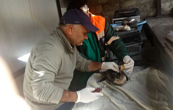 EKODOSD’a getirilen kuş incelendiğinde, 7 yerinden olta iğnesinin battığı görülür. Tüm iğneler keski yardımıyla kesilerek çıkarılır. Pansuman yapılan karabatak tekrar kendi yaşam alanı olan denize bırakılır.
