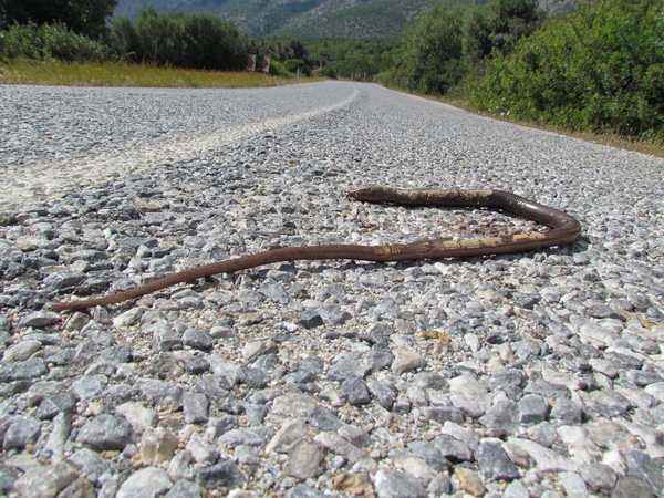 Karayolundan karşıdan karşıya yavaş bir şekilde geçerken, bazı sürücüler tarafından özellikle ezilmektedir. Yolda görüldüğünde hız düşürülerek, bu canlının doğal yaşam alanına geçişine izin verilmelidir. Piknik yapılan yerlerde de yoğun görüldüğünden, piknikçiler tarafından yılan sanılarak sopayla öldürülmektedir. Bu konuda çalışmalar yürüten bilim danışmanı üyemiz ADÜ Biyoloji Bölümü’nden Prof. Dr. Kurtuluş OLGUN Oluklu Kertenkele (Pseudopus apodus), insanlar tarafından genellikle yılan olarak bilinen bu tür yaklaşık 1 metre veya daha uzun boylu olan zehirsiz (Türkiye’deki tüm kertenkeleler zehirsizdir) bir kertenkele türüdür.