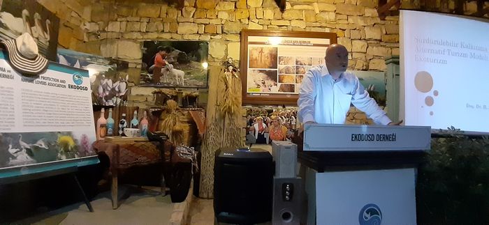Sürdürülebilir kalkınma için bir alternatif turizm modeli olan Ekoturizm konusunda bilgi verdi. Kitle turizmi ve alternatif turizm arasındaki farklar anlatıldı. Alternatif turizmin; Planlı ve programlı olarak yöre halkının katılımıyla ve onların kontrolünde uzun vadede gelişme sağlayan, değişime karşı direnç gösteren, küçük ölçekli işletmeler ile yerel mimariye uyumlu, çevreye ve kültüre karşı duyarlı ve onlarla bütünleşme sağlayan ve kitle turizminin (deniz-kum-güneş üçlüsü) dışında kalan bir turizm çeşidi olduğunu belirtti.