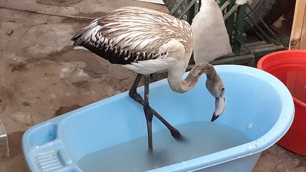 Bir ara uçarak Samson Dağları’na doğru giden flamingo, tekrar çocukların olduğu alana gelmiş. Flamingoya yaptığımız sağlık kontrollerinde kötü bir bulguya rastlamadık. Güçsüz ve besinsiz kaldığından 2 gün EKODOSD’ta misafir ettik. Balık ve karideslerden oluşan bir karışım yiyecek verdik. İçinde su olan bir bebek küvetine koyarak, besinleri kendisinin yemesini sağladık. Bölgemizde Büyük Menderes Deltası ve Bafa Gölü flamingoların önemli beslenme alanları arasında bulunmaktadır. Biz de juvenil flamingoyu doğal beslenme alanlarından biri olan Büyük Menderes Deltası’na götürdük. Deltanın tuzlu ve besin dolu sularında hemen beslenmeye başladı. Bir süre sonra yanına bir arkadaş buldu. Karina Dalyan’ının üzerinde uçarak gittiler.