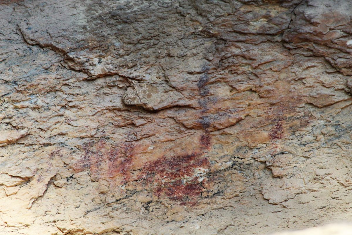 Devasa büyüklükteki bir kaya duvarına çizilen resimlerde, bir kadın figürü, iki bezeme, ikisinin ayrı çizilmiş kadın eli olduğu tahmin edilen 17’si sayılabilen birçok el izi yer almaktadır. Latmos’ta bile bu kadar çok el betiminin yer aldığı resim yoktur.