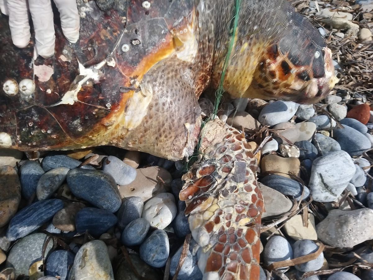 Bir tanesinin muhtemelen trol ağlarına takılıp boğularak öldüğü tahmin edilmektedir. Diğeri ön yüzgeçlerine paragat misinası dolandığından kurtulamamış. Misinalara dolanan kaplumbağanın 110 cm. büyüklüğünde erkek bir kaplumbağa olduğu görüldü. Kibrit kutusu kadar büyüklükte yumurtadan çıkan bir yavrunun, bu ebatlara ulaşması yıllar alan bir süreç. Sonunda ise insan kaynaklı olarak ölmesi çok üzücü bir olay. Özellikle paragat misinalarına takılan deniz kaplumbağalarının kurtulma şansı yüksektir. Paragat sahibi bu tür vakalarda haber verdiği takdirde kaplumbağa çok rahat kurtarılabilir.