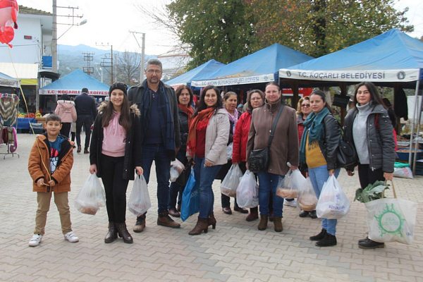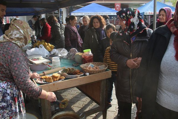 Aracıların olmadığı, üretici ve tüketicilerin doğrudan bir araya gelerek ürünlerini sattığı pazarda, incelemeler yapıldı. Kuşadası köylerinden gelen üretici kadınlar, pazardaki kadınlarla görüşerek, bilgi alışverişinde bulundular. Aynı ürünlerden kendilerinde de olmasına rağmen, pazardaki kadınlara katkı yapmak için alışveriş yaptılar.