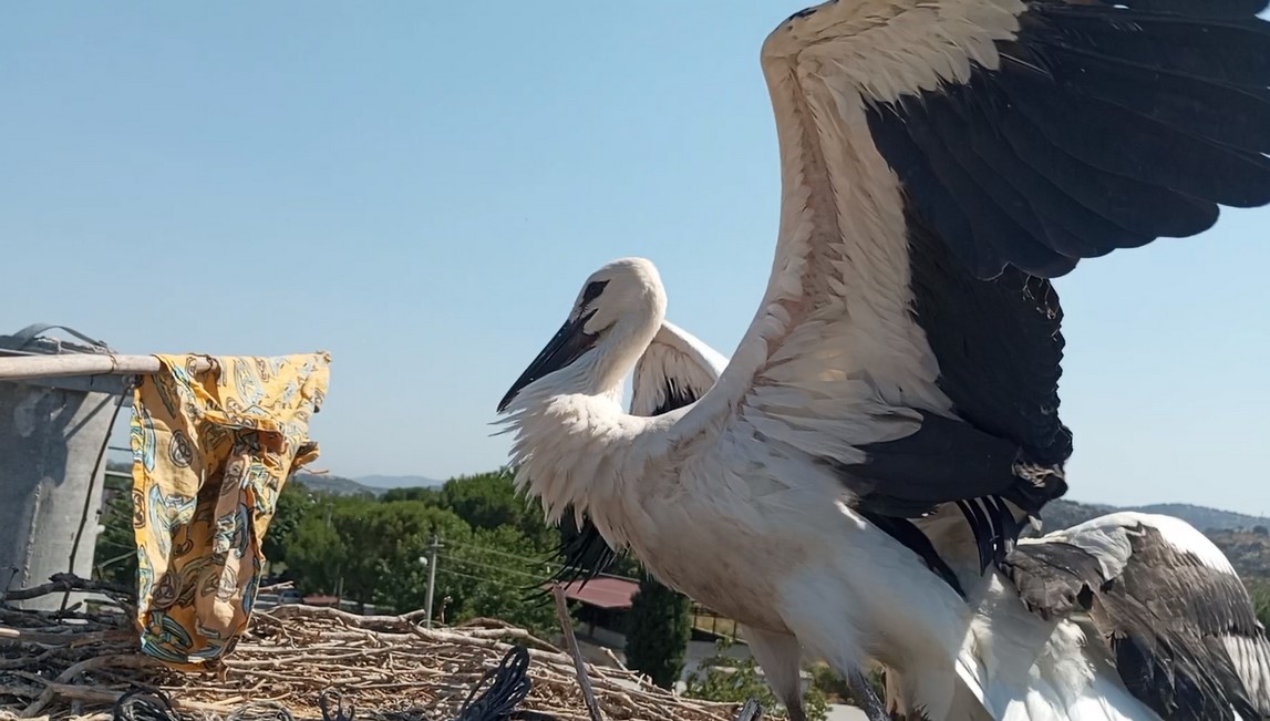Anne leylek 38 gündür tek başına 3 yavrusunu beslemek ve su taşımak için büyük gayret göstermiş. Hatta yavruları neredeyse kısa bir süre sonra uçacak hale gelmesini sağlamış. Doğanın kurak geçtiği bu günlerde 40 derecenin üstünde sürekli olarak yiyecek ve su bekleyen 3 yavruyu beslemenin hiçte kolay olmadığını, köyde oturan vatandaşların gözlemiyle anne leyleğin durmaksızın yuvadan doğaya, doğadan yuvaya gidip geldiğini öğrendik.