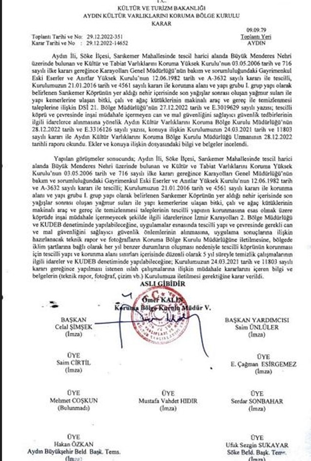 Aydın Kültür Varlıklarını Koruma Bölge Kurulu ekteki kararda belirtildiği şekilde, 5 yıl süreyle temizlik yapılabileceği konusunda kurumları bilgilendirdi.