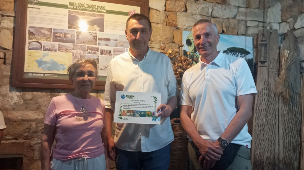 Yapılan sunumdan sonra Levent Kutbay’a, Meral Orhan ve arkeolog-rehber Akın Aykurt tarafından EKODOSD’un teşekkür belgesi takdim edildi.