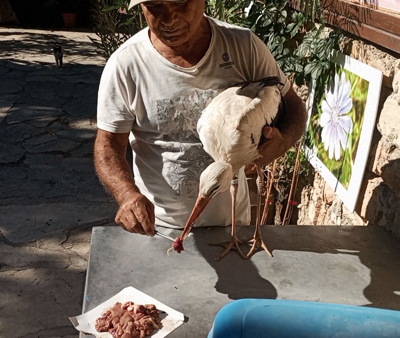Bitkin ve yorgun görünen leyleğin gerekli tedavisini ve beslenmesini yaptık.