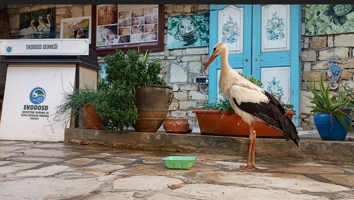 Kuşadası Kadınlar Denizi Mahallesi’nde oturan Yaren Yılmaztekin tarafından bir leylek ihbarı geldi. Leyleği gece apartmanın önünde bulduklarını ve güvenli bir kapalı alana koyduklarını söyledi. Leyleği teslim alarak kontrolünü yaptık. Kanadında küçük bir yaralanma olduğunu gördük. Muhtemelen apartmana çarptığını düşünüyoruz.