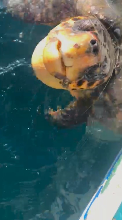 Denize bırakmış olduğu iki alandaki paragatların birinde, bir C.carettanın misinalara dolandığını fark etmiş. Kaplumbağaya zarar vermeden misinalardan kurtararak yüzmesini sağlamış.
