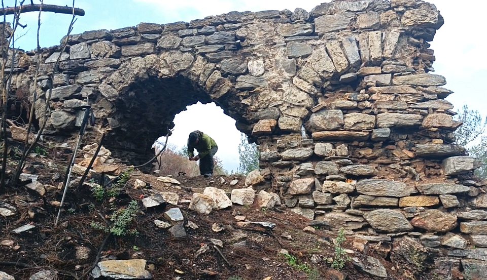 Geçtiğimiz Yaz çıkan orman yangınları sonrası ağaçlar ve makilikler küle dönüşünce bitki altında kalan su yoluna ait bazı yapılar meydana çıktı.