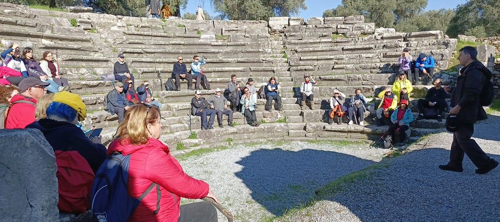 Üyemiz Prof. Dr. Figen Yıldız’dan deliceler ve Memecik zeytinleriyle ilgili bilgi aldık.Rotamızın sonunda yine zeytin ağaçlarının içinde bulunan ve ünlü coğrafyacı Strabon’un; hızlı akan ve derin bir boğaz oluşturan dereyle ikiye ayrılmış çifte kent dediği Nysa’nın ayaklarımızın dibinde bitiveren tiyatrosunu ve Menderes Ovasıyla bütünleşen harika panoramasını izledik.Profesyonel turist rehberi Hakan Bahçecioğlu’nun anlatımıyla, tiyatroyu, agorayı, kütüphaneyi, yaşlılar meclisini, gimnasyonu ve oldukça etkili olan tüneli dolaştık.