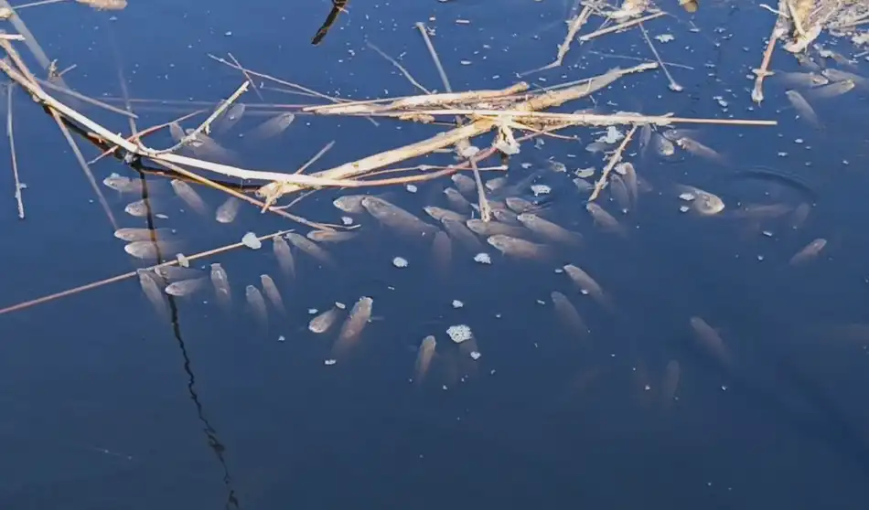 Kara atık sular nedeniyle 2 gün önce binlerce küçük balık ölmüş, şu anda daha büyük balıklar oksijensizlikten yaşam savaşı verir hale gelmişlerdir.