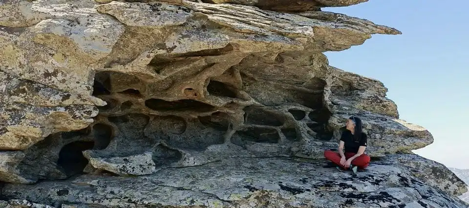 Brokoli görünümlü fıstık çamlarının içinden yürünerek, kızılçamlarla devam eden parkurda, yükseltilerdeki güzel kokulu ardıç ağaçlarının yanından dağın olağanüstü doğal peyzajı izlendi. Türkiye’nin birçok yerinde olduğu gibi, Latmos Dağları’nın yükseltilerinde ve geçit yerlerinden biri olan Anadolu Gediği’nde de bulunan, taşların üst üste yığılarak oluşturulduğu kutsal alan olarak bilinen Ovo’lardan biri incelendi.