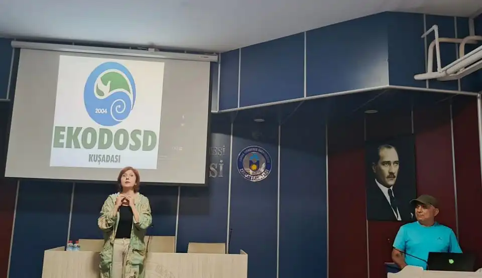 Dilek Yarımadası Büyük Menderes Deltası Milli Parkı mühendisleri Erdinç Kutsal ve Harun Kaya, EKODOSD başkanı Bahattin Sürücü’nün konuk olarak katıldığı panelde, Dilek Yarımadası Büyük Menderes Deltası Milli Parkı’nın, Bafa Gölü Tabiat Parkı’nın, Latmos (Beşparmak) Dağları’nın, Büyük Menderes Nehri’nin doğal ve kültürel kaynak değerleri, biyolojik çeşitliliği, tehditleri, ekoturizm potansiyeli anlatıldı.