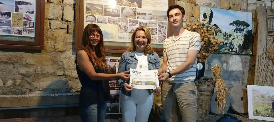 Yapılan sunumdan sonra konukların sorularını yanıtlayan Prof. Dr. Başak Burcu Eke’ye, Turizm Fakültesi Rehberlik bölümü öğrencileri Şevval Candaş ve Yusuf Seyrek tarafından EKODOSD’un teşekkür belgesi takdim edildi.