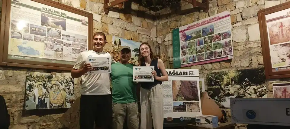 2025 yılı stajlarını EKODOSD’da tamamlayan Ege Üniversitesi Fen Fakültesi Biyoloji Bölümü lisans öğrencileri Eda Dayı ve Santos Hogır Şurzan Cenk Wennekes’e belgeleri takdim edildi.