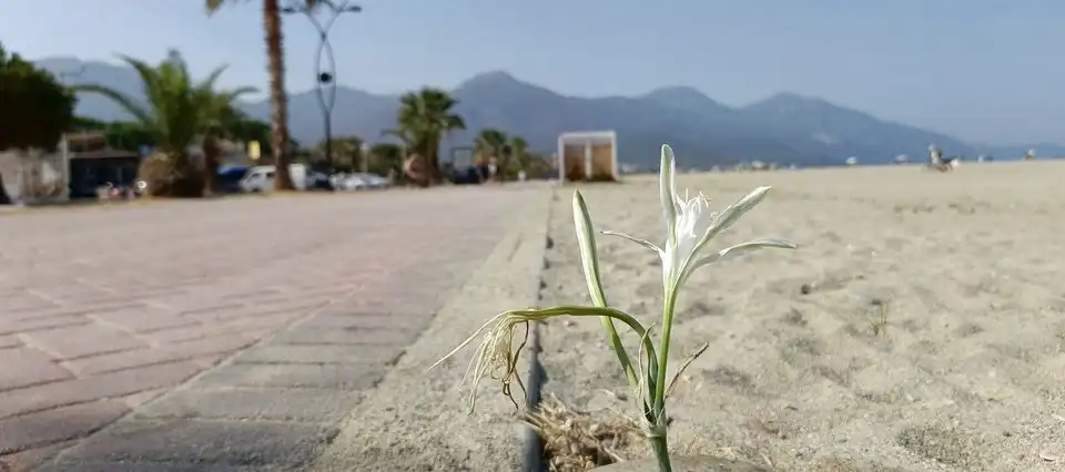 Yürüyüş ve bisiklet yolunun dibinde açan kumzambağı, yine eskisi gibi Kuşadası sahillerindeki kumzambakları açabilir mi sorusunu akla getirdi.
