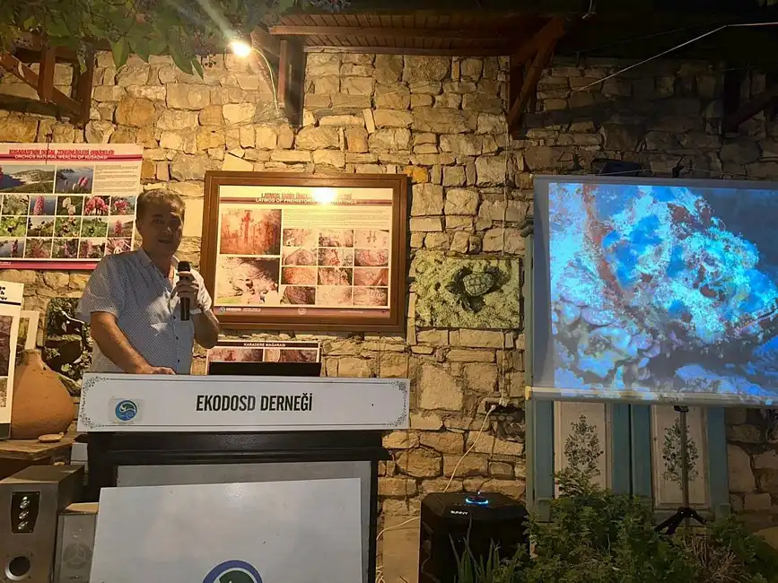 Denizel biyoçeşitliliğin önemli türlerini, deniz yaşamındaki canlıların birbirleri arasındaki etkileşimini, insan kaynaklı oluşan deniz ekosistemi üzerindeki baskıyı, iklim değişikliğiyle birlikte türlerin yer değiştirmesi sonucu Kuşadası’na kadar gelen istilacı türleri görseller üzerinden anlattı.