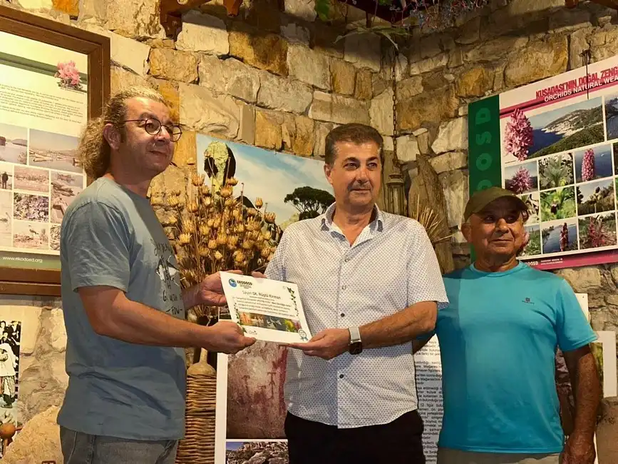 Yapılan sunumdan sonra konukların sorularını yanıtlayan Dt. Rüştü Kirman’a, Adnan Menderes Üniversitesi Fen Fakültesi Biyoloji Bölümü öğretim üyesi Prof. Dr. Murat Bilecenoğlu tarafından EKODOSD’un teşekkür belgesi takdim edildi.