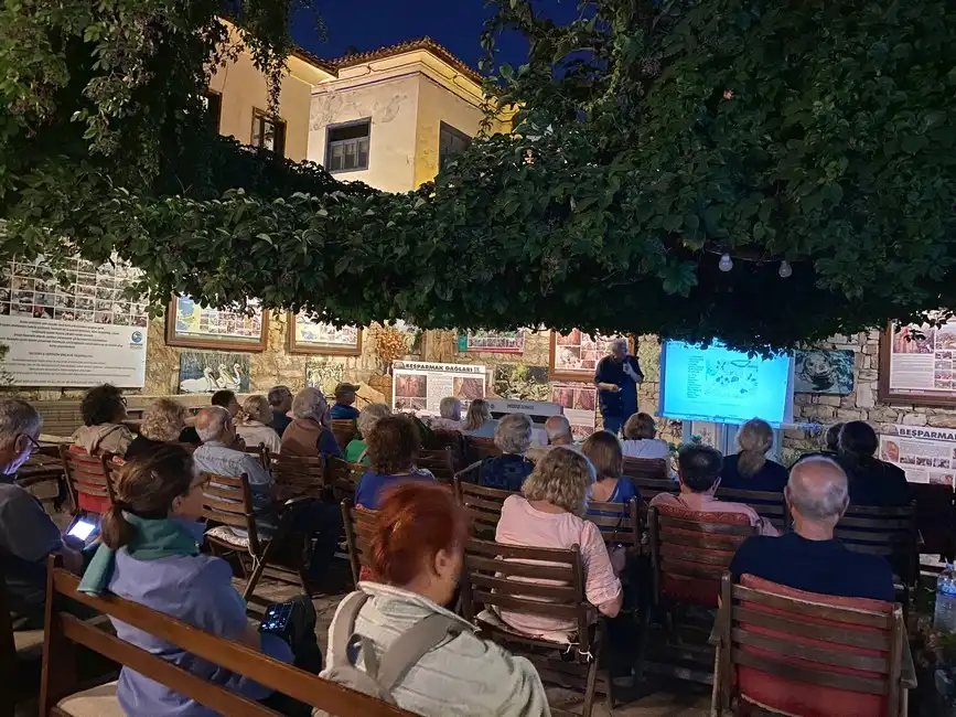 Ali Vardar sunumunda terk edilmiş Çömlekçi Köyü’nün yerinin hem Sisam Boğazı’na hakim değerli bir manzara noktası olması açısından, hem de tarihi öneminden dolayı planlamalarla yapılaşmalardan korunması gerektiğinin altını çizdi.