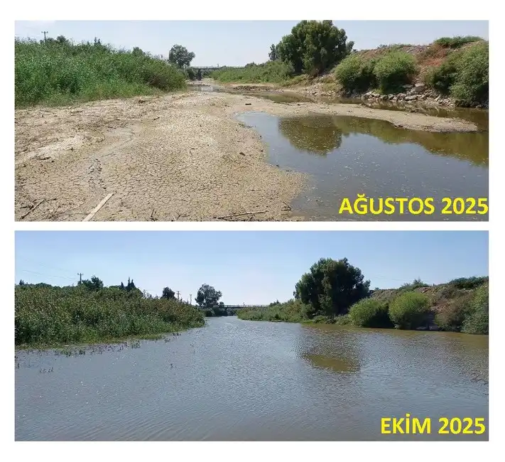 Yaz aylarında kuruyan B.Menderes Nehri’ne yağmurlarla birlikte tekrar su dolmaya başladı.