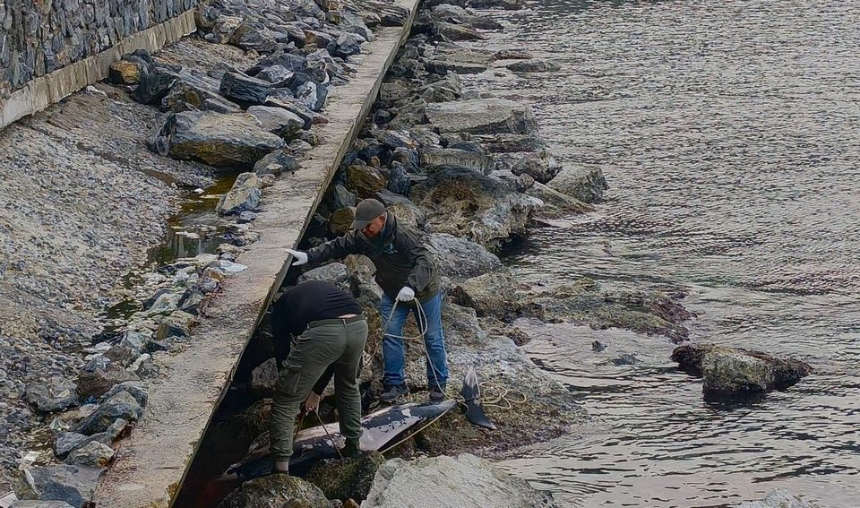Güvercinada’da çalışan Kuşadası Belediyesi görevlileri tarafından denizden dalgalarla gelen bir Yunusun mendirek kayalıklarına çıktığı ihbarı geldi.Ölü olduğu anlaşılan Yunus kayalıklardan çıkarılarak kıyıya alındı.Yapılan kontrollerde bilimsel adı Delphinus delphis olan Tırtak türü bir Yunus olduğu tespit edildi.2.27 m. boyundaki Yunustan doku örneği alındı. Herhangi bir yara ve kesi izine rastlanmadı.