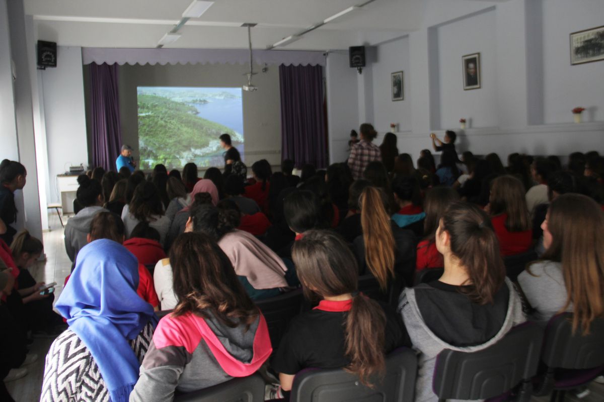 Kuşadası Ada Mesleki ve Teknik Anadolu Lisesi’nde bir sunum gerçekleştirildi.Kuşadası ve çevresindeki ekolojik sorunlar, tehditler ve yapılan çalışmalar hakkında bilgi verildi.Kuşadası’nın karasal ve denizel biyoçeşitliliğin çok önemli olduğu, zengin türlere ev sahipliği yaptığı ve bu değerlerin korunması için özellikle geleceğin büyükleri olan öğrencilerin duyarlı olması gerektiği belirtildi.